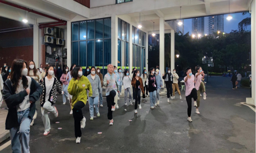 联动融合:校Twinkle啦啦操排舞队与花果书院于本月17日19:00在花果书院小广场共同开展燃脂“Disco”活动。本次校队通过前期准备层层筛选,最终选出四名领舞队员带领同学们一键开启校园广场舞模式,本次活动共计70名女生报名,场面热闹,同学们积极参与,一起快乐燃脂,甩掉烦恼。