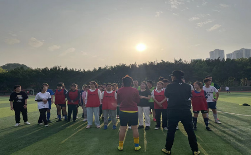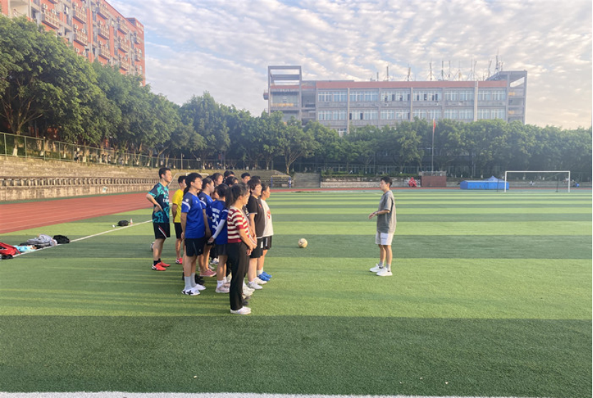 学院对接:2022年4月6日在B区足球场,指导智能工程学院、艺术传媒学院、远景学院二级学院足球队训练。主要以恢复身体机能为主,通过腹肌以及上、下肢的轻力量训练结合传接球训练最后是分组对抗。为阳光杯足球比赛做好前期储备工作。