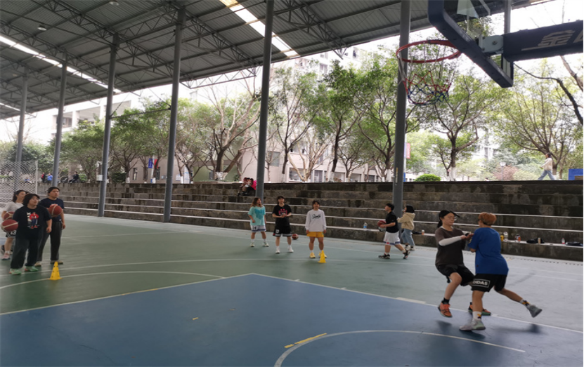 训练工作:本月校女篮的训练以三人间进攻配合为主,围绕传切、持球掩护、无球掩护的训练方式来加强队员的跑位意识,通过队内对抗赛中体现出队员场上空间感以及无球跑动意识有显著的提升;另外每周二会进行专项力量训练,其目的是持续强化队员下肢爆发力和核心稳定性。