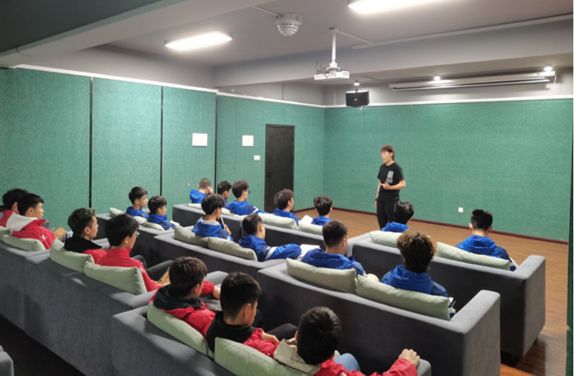 理论学习:4月12日移通男足在爱莲书院进行理论学习。本次理论学习讲到前场压迫后快速形成打门的能力,在分别由前锋,中场,后卫,守门员四个位置的队员依次进行复述总结。大家通过学习讲到了已有提升的部分和仍有不足的地方。