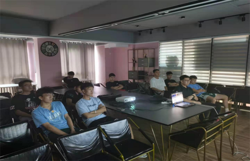 理论学习:本月校男篮在爱莲书院观看2021年CUBA二级联赛总决赛。在观赛中,结合4月的训练内容,进行有针对性的对比赛中双方队员的身体对抗利用和区域传切配合进行学习和讨论,并在教练的讲解下,男篮队员对合理利用身体对抗及小范围的传切配合有了更进一步的认知。