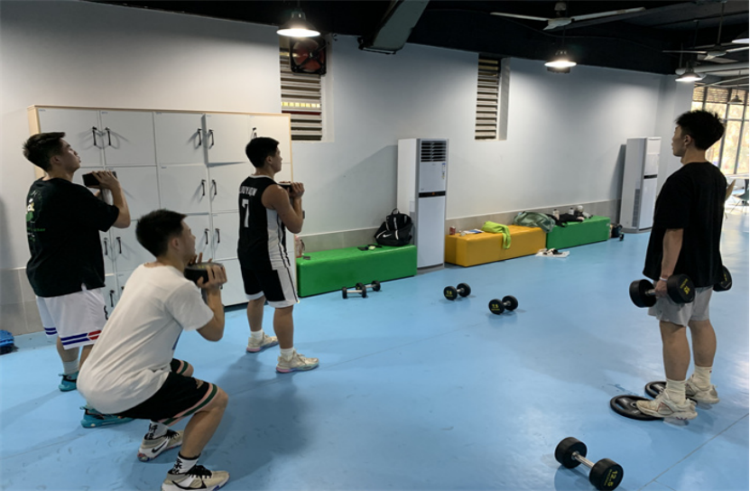 训练工作:本月校男篮主要以篮球专项力量训练为主,每周二在汇江书院健身房利用哑铃、杠铃、跳箱等训练器材,针对下肢绝对力量、下肢爆发力、核心稳定性以及上肢力量进行强化训练,从而在结合球训练中对不同技术动作有更好的力量支撑和保护。