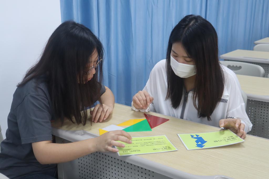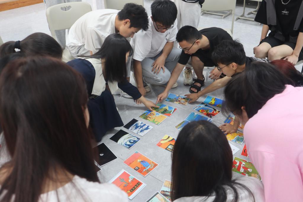 第二个项目是“盗梦空间”,在黄教练详细讲解下,同学们依次领取照片,在规定的25分钟内按照一定的逻辑顺序排列,不让其他人看见,最后按照规则描述照片的内容,找出内容相近的队友照片排序。