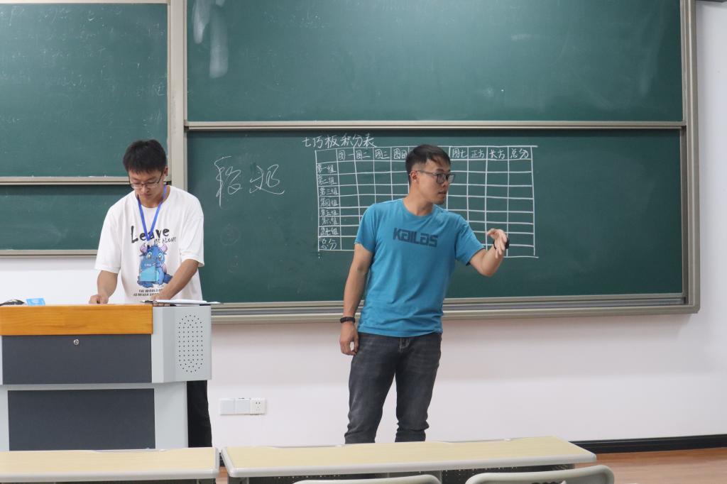 同学们被段教练随机分组,在规定时间内,所有人员需要一直待在固定位置,按照要求完成相应任务,各组每完成一项任务需举手向教练示意,教练检查确认后将为正确的小组加相应的积分。