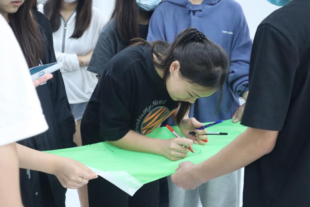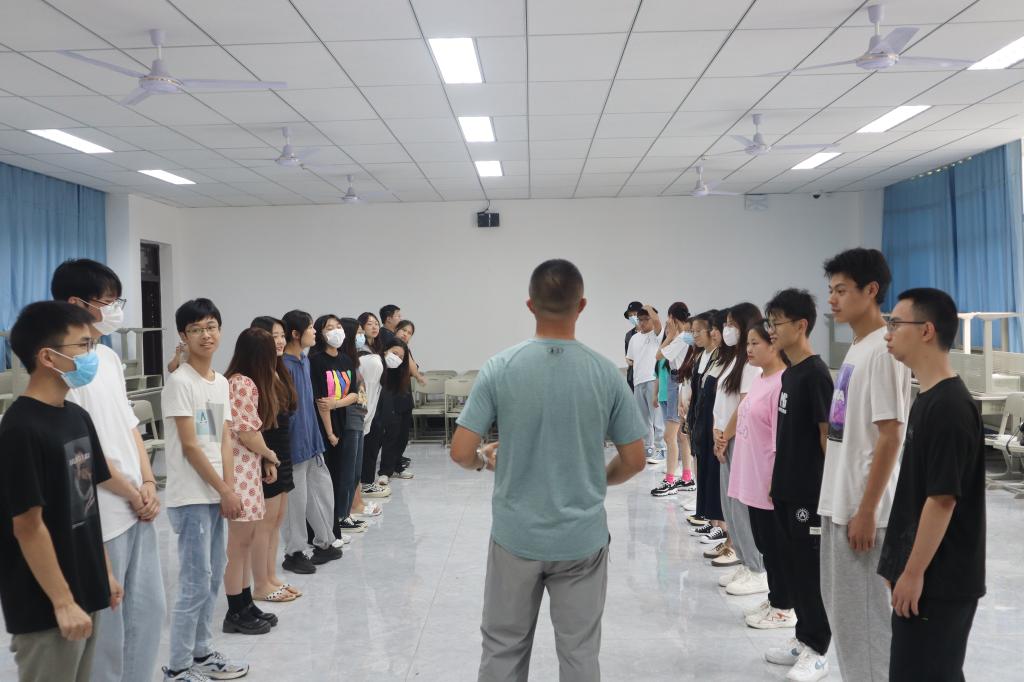 首先,张教练介绍完破冰行动课程相关内容和注意事项后,30名同学被随机分为两组并以小组为单位完成相关项目挑战。小组刚成立时,彼此之间会有些许陌生,但随着展示队名、合唱队歌、讲解队训系列项目的进行,队员们也逐渐熟悉起来,他们勇于打破僵局,从不善言辞到各抒己见,出色地完成了各项任务。