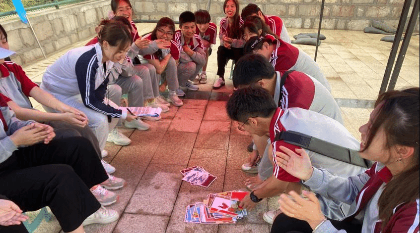 第一个大项目便是密码解析。大家需要根据游戏规则每次拍一个人跑去前方翻一张牌并记住牌数,最后按照从A到K到顺序排好十三张牌。了解完规则后,各小队便开始激烈地讨论起了战略,然后派遣人出发。每个队伍的策略不一样,有的队伍选择按照顺序翻牌并起记住自己的牌数,全部翻完之后再按照顺序重头开始翻牌。很快一局结束了,大家的所用时间差距不大。第二局紧接着开始,有了第一次的经验,第二次完成的更快,每个队伍的策略也进行了调整改进。四队更是以两分钟的差距遥遥领先后面的队伍。接着第三局第四局改变了一些游戏规则进行,不仅仅是靠头脑也需要运气,这也导致一些队伍开始出现了自暴自弃的现象。这个项目结束后,大家都懂得了团队的合作不仅仅需要团结,也需要有组织有领导,有条不紊才能做到临危不乱。