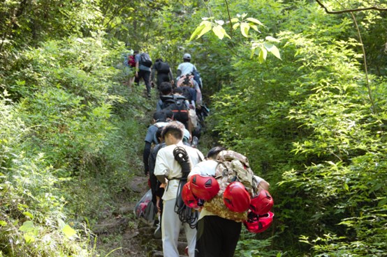 崖壁下降对于一个户外爱好者来说可谓是又爱又恨,看似运用几根绳索就可以从崖壁的上端降落到崖壁下端,这里面却是包含了许多绳索技能等各种攀岩知识。去年中国大陆共发生了五百零九起户外登山事故,死亡人数六十五人,可见登山崖降必须具备在专业人士的指导下进行。正如教练常挂在口中的那句话“不能保证安全,一切都是空谈”。在教练的专业的指导下,户外运动队队员们对前期绳索技术知识进行了温习,随后很多队员在安全的前提下顺利进行了属于自己的第一次户外崖降。