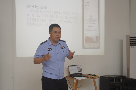 此次宣传会中,吴队长以网评刷单、婚恋交友、贷款办理信用卡、冒充领导熟人类、冒充电商客服类、虚假网络购物及游戏、投资理财七种诈骗手段,以案说法进行全方位讲解,同时向大家讲述如何识别诈骗技巧以及遇到可疑情况如何处理,才能最大限度地减少和挽回损失。