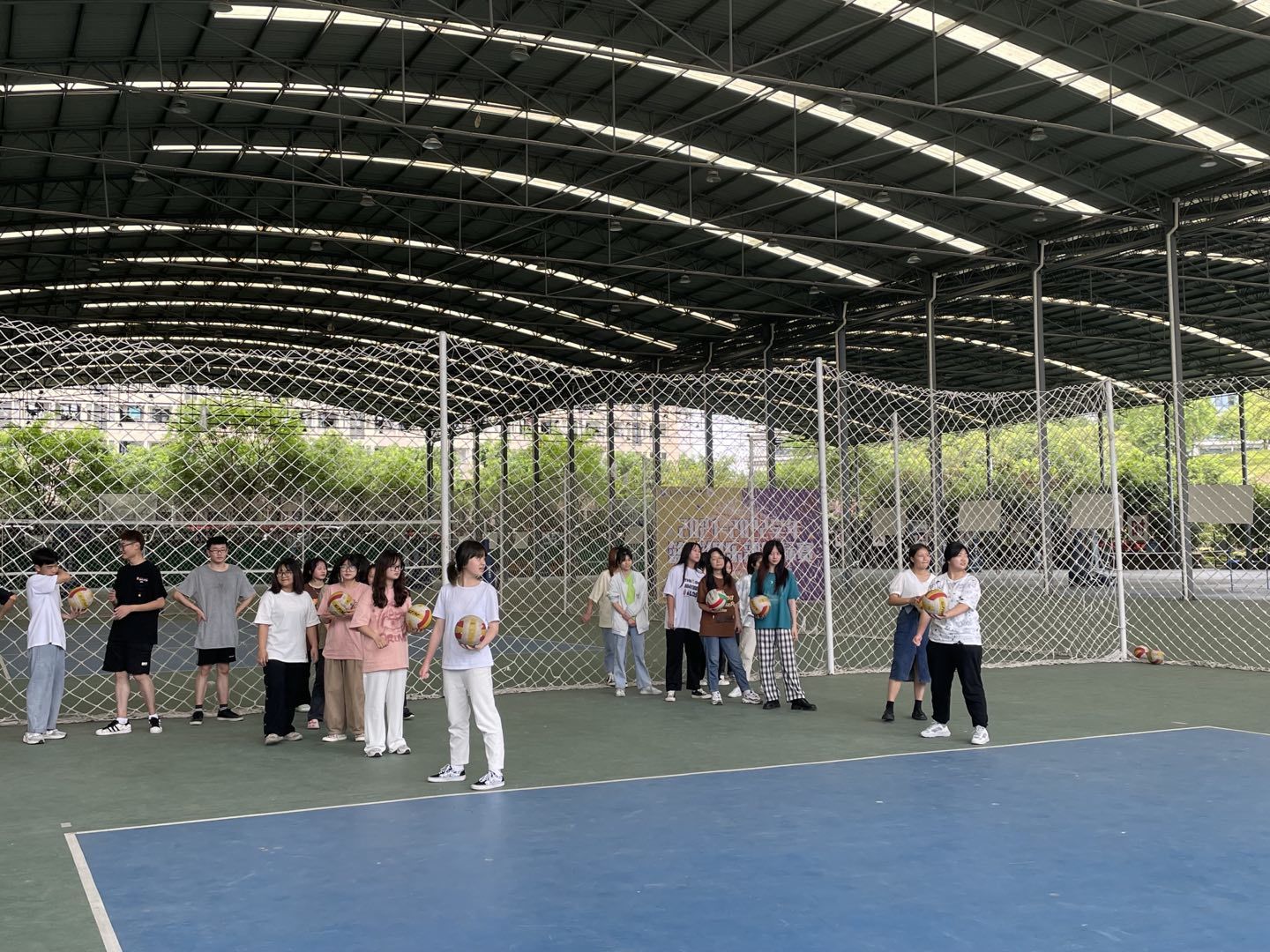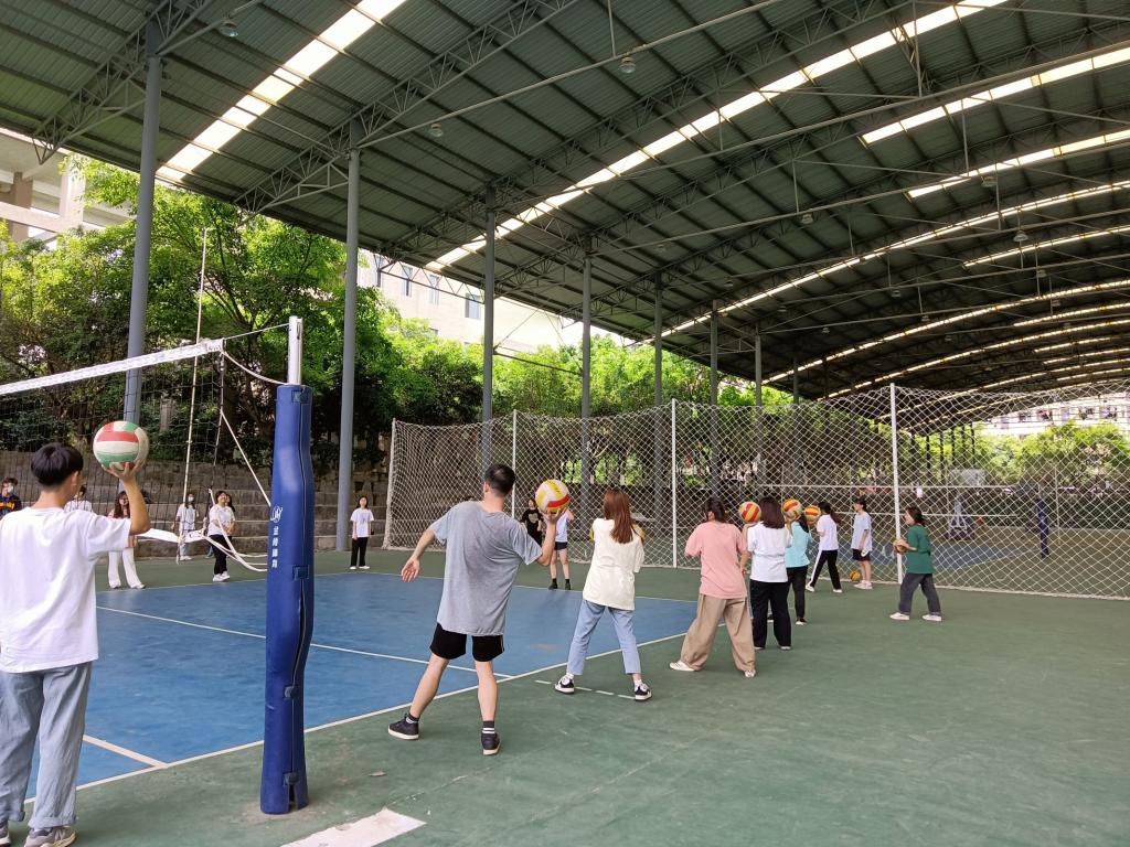 听完队员们的讲解,同学们也有了初步的兴趣。同学们在排球队队员们的带领下进行各项热身运动,而排球也刚好拿来。大家怀着饱满的热情积极地投入到了这场别开生面的“初入排球场”的运动中。