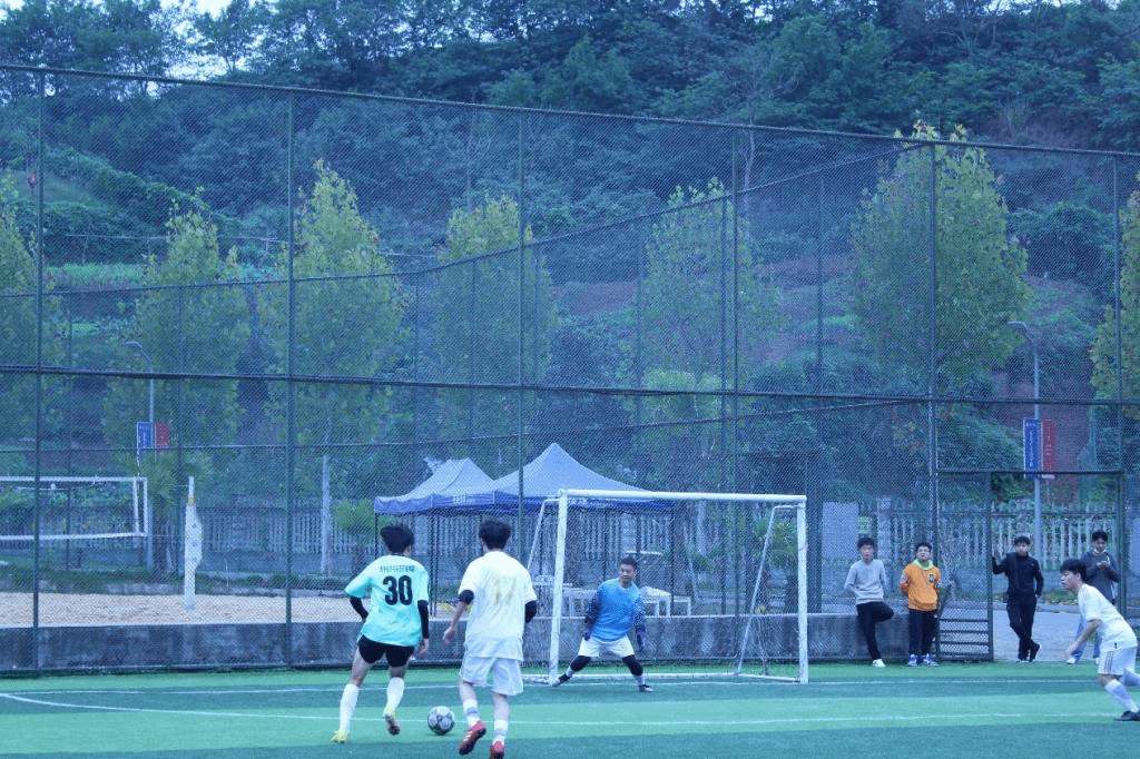青春逢时,恰同学少年,风华正茂。比赛哨声响起,我院球员率先进入状态,前场积极拼抢,频频发起进攻,一度占据主动优势,我院足球队凭借稳健的防守,出色发挥,力保球门不失。双方队员你追我赶、你攻我守,激烈的对抗燃爆全场。随着一声哨响,上半场结束,我院足球队以3:0暂时领先。