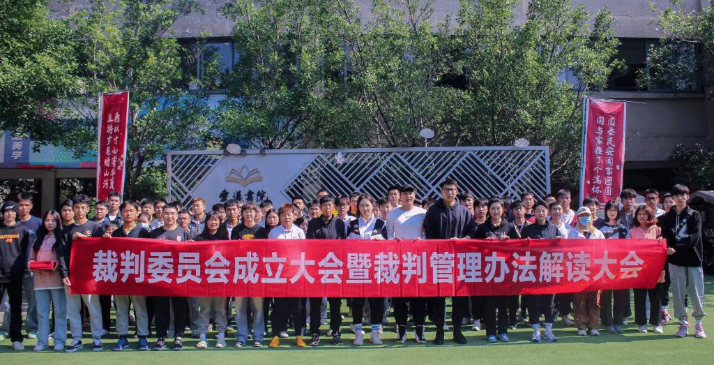 向各类教练颁发了聘书,为了建立一支有职业道德、精湛业务水平的裁判员队伍,宣传和动员我校裁判员,积极参与到我校竞赛工作中,从而进一步提高我校裁判员执裁水平,促进我校运动技术水平的发展。在每位指导老师的带领下,所有裁判员更加团结,有信仰。并且在裁判工作中更加规范化,专业化。裁判委员会也将不断发光发热,为我校各项赛事活动创佳绩,获辉煌。