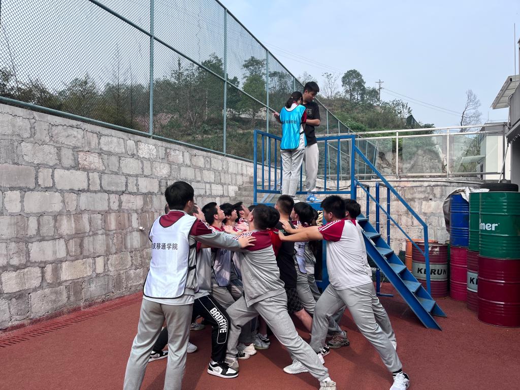 11月10日,伴随着初升太阳的好天气,大家脸上都洋溢着喜洋洋的笑容,充满活力地迎接新一轮任务,为接下来的挑战做足了准备。各队成员在各位教练的带领下,分别进行了“信任背摔”“躲避雷区”“七巧板”“穿越电网”的项目训练。在“信任背摔”项目中,一个人需站在1.6米高的背摔台上直躺着向背后摔下去,此时队员们用双臂搭成“人桥”,顺利接住摔下来的伙伴,大大锻炼了成员们之间的信任与默契程度,让同学们深刻感受到信任的重要性,提高团队凝聚力。“七巧板”项目一开始有些乱,大家自己顾自己,没有什么好的方案,结果耗时很多,收效甚微。经过教练点拨,大家冷静下来,集思广益,在队长的领导下,队员们通力合作、合理地分配资源,即快好省地完成了“七巧板”项目。在项目训练下,各队队员彼此之间更加信赖,保护队友的责任感大大增强,体现了众志成城、齐心协力的团队精神。