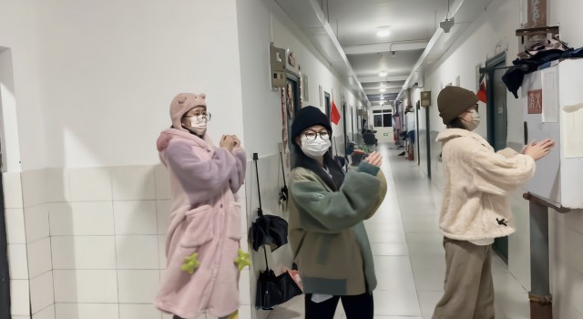 人在哪里,舞台就在哪里。即使无法出寝,也不能阻止一颗颗活跃的心。这不,一场场舞蹈秀就此展开。首先登场的是女生寝室,只见她们整齐站列,身体随着音乐慢慢摆动,每一次甩手、下腰、踢腿无不展现着力量和美的结合。另一边的男生寝室也不甘示弱,音乐响起,灵活的双手合着音乐节奏在空中翻转着,尽展阳刚之美。疫情虽然限制了大家活动的场地,但是没封住同学们想要运动的心,一个个运动视频无不在展现同学们的激情。
