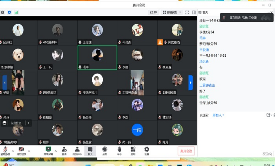 11月19日女游于腾讯会议APP开展线上团建活动。本次团建活动以趣味游戏为主,游戏分为四个环节:猜歌名、表情包猜成语、数字接龙、海龟汤。通过此次团建活动加强了队员间的交流,拉近了队员间的关系,提高了队伍的凝聚力。