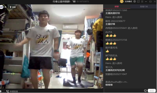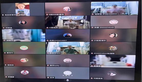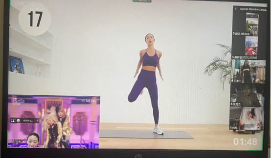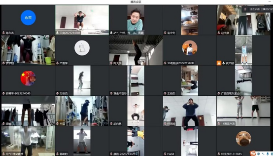 11月16日、23日、30日,王钰涵教练对接淬炼商学院开展三次线上心肺训练活动,采用同屏互动的形式进行。疫情当前,虽然封寝,但是学生需要身体上的活跃、精神上的愉悦,通过简单的动作和跟跳有氧操,释放学生心理压力。