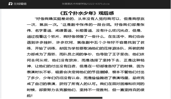 11月22日-27日,游泳社面向全校学生开展了《五个扑水少年》观影活动并写下三百字以上的观后感。此次活动目的在于通过观看电影使学生去体验自己生活中没有经历的感受,去认同电影人物中建立的同理心,从中寻找勇敢与信念。