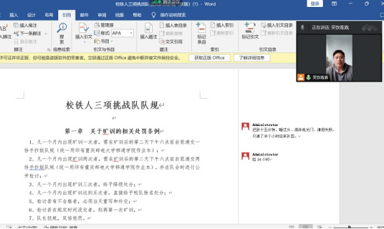 校铁人三项挑战队于11月11日开展了理论学习课程,本次课程由郑万达教练向全队学生解读本队队规的相关规定,并对大一队员的问题和意见一一解答,目的是让大一新生对校队的管理规定有一个清晰的认识。