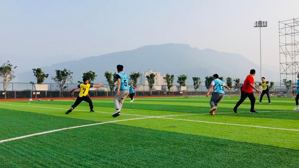 很快在第二小节就找到了适合本队的战术方法---短距离的传接。队员随时调整站位,预先跑到合适的位置准备接盘,在来回奔跑中挥洒汗水,每一次抛盘与接盘都考验着队员之间的协作配合。所有成员积极参与,场面气氛高涨,加深了部门间的兄弟情谊。