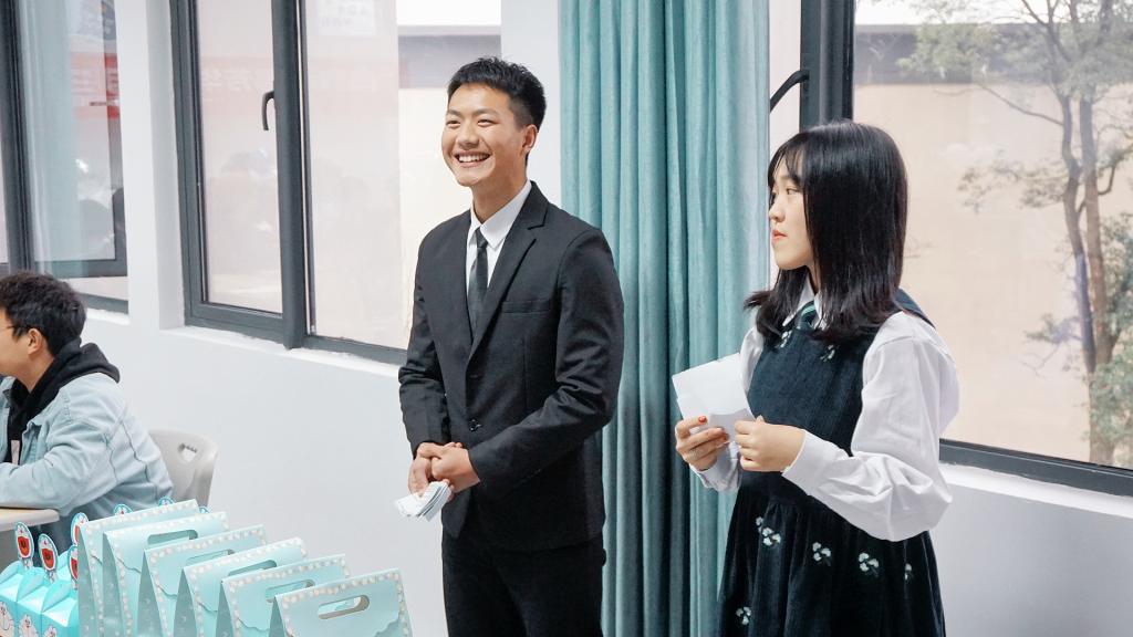 工作上,从最初的无知小白到如今的有条不紊,他不断的在成长着。最开始简单的表格复制都不会的他也在今年五月成功考取了计算机二级证书,能够熟练运用办公三件套;最开始接触部门工作手忙脚乱的他,通过大一一学年的磨练,最终能够游刃有余,在学年末被评为淬炼·国际商学院学年优秀干事;最开始处理年级工作抓耳挠腮的他如今面对各项年级工作能够稳步推进,与搭档们一同组织丰富多样的年级会,最终为年级斩获数次优秀主题年级会……当然,也曾带领着年级队伍参加綦江校区首届传统文化体育节,与伙伴们一同夺得二等奖,暑假利用军事经验带训夏令营……从头开始,从零再来,是对他最好的诠释。最开始对新闻稿、策划书头晕眼花的他也学会了如何去撰写文稿,开始有自己的名字出现在学校推文平台的机会;最开始怯于表达的他也开始在台上直面观众的灼灼目光,侃侃而谈……这一年,他不断尝试,不断体验,不断经历。对于自己一学年来的“打怪”经历,他谈到:“有风有雨是常态,风雨无阻是心态。”