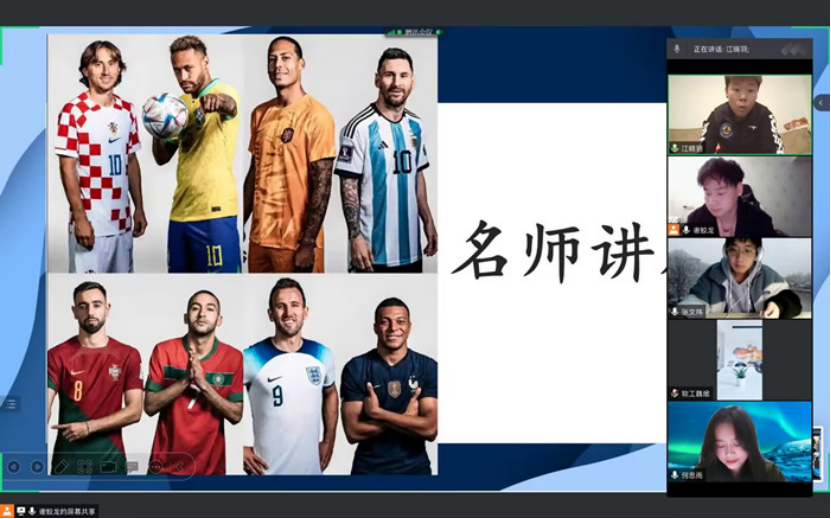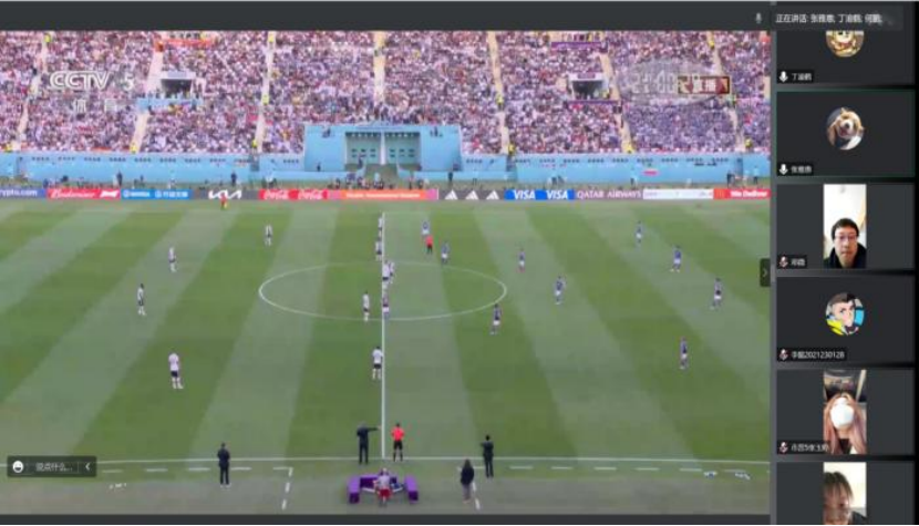 院系对接:12月10日受远景学院的邀请,与张雅惠教练一起参加名师讲堂活动—讲评世界杯1/4决赛葡萄牙vs摩洛哥的比赛。在竞猜比分的环节学生们的热情非常高涨。通过与同学们的互动交流。主要给他们分享了一些足球场上的基本规则及如何认识一个整体阵型。