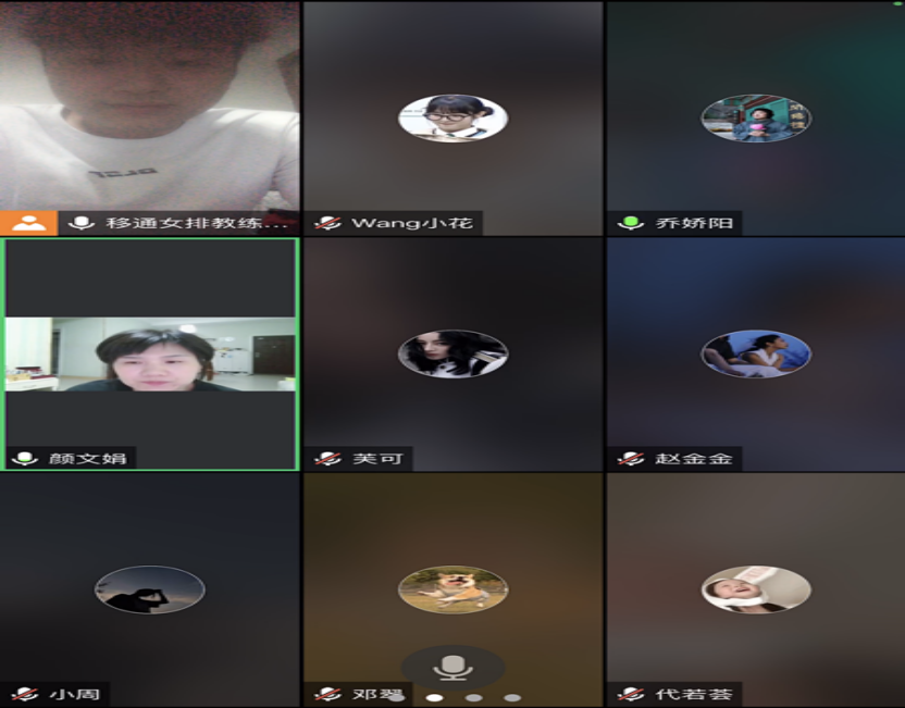 训练工作:校园解封后,提升队员们球感,李雅琪、高川教练协商后一致决定,线上体能改为线上技术训练,根据队员们的自身情况拟定训练计划,围绕基本功垫、传、扣球,二传后排插上传球,对抗赛进行训练,同时,教练员在线上监督,并指出问题。