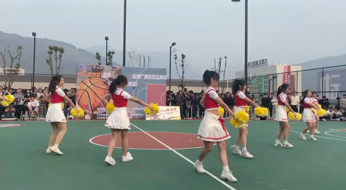 春风漫步,桃李笑语。3月10日,重庆Double Q街球厂牌校园篮球行到达移通站綦江校区。双方队员激情高涨,你争我夺,展开了一轮轮的投球防守,赛场上鼓声铿锵,呐喊声、欢呼声响彻云霄,紧张而富有激情的气氛感染着在场的每一个人。中场休息时,来自通信与信息工程学院拉队在主持人的介绍和音乐声中高举着花球上场。只见队员们身着亮丽的服装,排着整齐的队伍,充满青春气息的脸上洋溢着自信的微笑。女队员们随着节拍,踏着动感的节点,弹跳着轻盈的脚步,身姿动作优美,精美的造型动作使全场观众为之震撼。观众们的掌声如雷鸣般,叫好声一浪高过一浪。她们以曼妙而灵动的舞姿,使观众热情高涨,从而传达出为篮球队成员们的加油与喝彩!