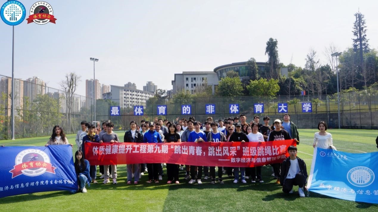 迟日江山丽,春风花草香。为了更好的丰富同学们的课余生活,加强班级同学之间的交流,提高学生身体素质。2023年3月10日星期五下午14:00,数字经济与信息管理学院体质健康提升工程第九期“跳出青春,跳出风采”班级跳绳比赛于双栀足球场成功举行。数字经济与信息管理学院体育协会针对2022级专升本大一的班级开展了跳绳比赛活动,每个班级派出十二名学生参加这次比赛。