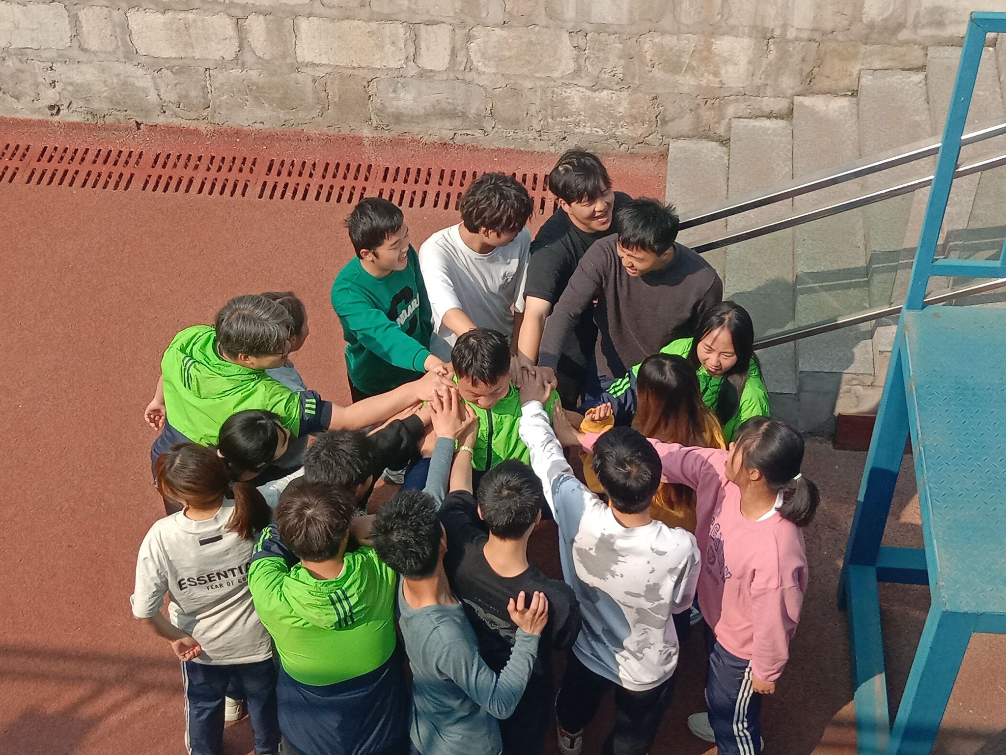 在接下来的“挑战150”项目中将以小队对抗的形式展开,六个小队分别完成四个小项目,即击鼓颠球、穿越时空、大河之舞、激情节拍。在练习的过程中,由于队员们对项目的不熟悉以及团队的默契度不够,导致练习效果不理想。最后队员们向教练请教项目技巧以及不断地总结失败经验、磨合调整,终于找到了完成任务的方法。在项目结束后,队员们也发表了自己对挑战150项目的心得体会。他说,“挑战150这是一个团队项目,需要队员们不断地沟通、总结、调整与提升,队员们只有在经历一次次的挫折才能形成团队合作,团队合作是团队成员一起通力合作形成的力量。同时这个项目也增进了我们对彼此的了解,缩短了彼此的距离,提高了我们的集体荣誉感。”