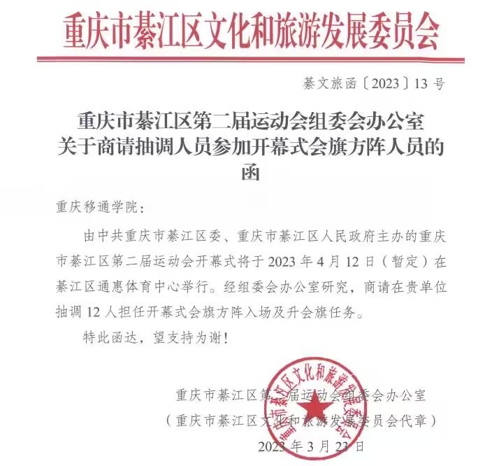四月,是欢闹的时节,繁花似锦,极尽绚烂,莺歌婉转,燕语呢喃。4月14日上午9时,“多彩綦江 创新之城”重庆市綦江区第二届运动会开幕式在区体育馆举行,我校国旗护卫队受邀参加綦江区第二届运动会开幕式。12名同学们踏着整齐的步伐护送区运动会会旗、区第二届运动会会旗,以饱满的精神、昂扬的姿态,充分展示我校学子的青春风采,为区运动会注入鲜活的移通力量。