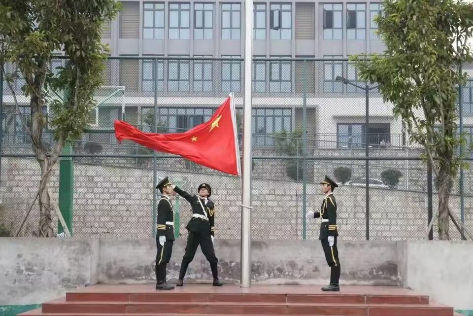 回想国旗护卫队建立之初,每周周一早上7:00,重庆移通学院綦江校区总会出现一抹迷彩绿,他们身穿帅气的服装、动作整齐划一,手捧国旗昂首向前……用新时代青年的自信风姿弘扬爱国主义精神,传承国旗护卫队的坚持。伴随着雄壮的国歌声,出旗、挂旗、甩旗、升旗……每一个动作都干净有力。除此之外,每周要训练4次,有烈日炎炎,有阴雨绵绵,但这些对于他们来说不足为惧。额头滴下来的汗、湿透的衣服、颤抖的双腿、酸痛的胳膊……这些都没有成为他们前进的阻力。一步一步,在响亮的口号下,他们从歪七扭八、节奏不一的队伍变成一支整齐划一、节奏一致的队伍。