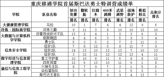 为培养我校学子坚毅品质,增强学生身体素质,挖掘学生领导能力,4月22日,我校7个学院、17支队伍、102名参赛队员、30余名工作人员在学校开展了一场特殊的完满实践活动——“重庆移通学院首届斯巴达勇士特训营”。营地教育中心副主任王碧铄、校团委社团活动版块老师杨佳燕、体育教学部老师胡垚及营地教育中心的各位教练出席本次活动。
