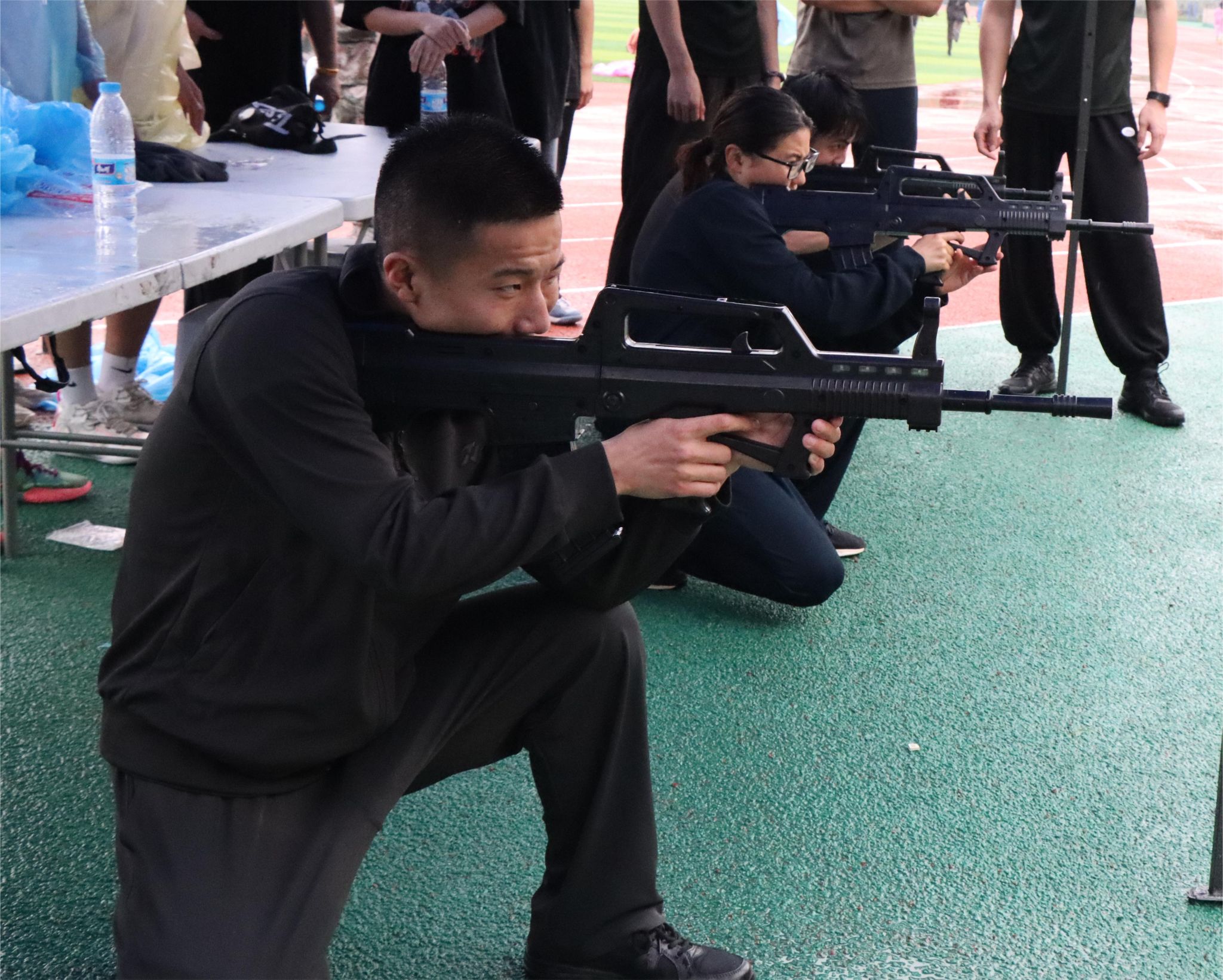 “团队最大的魅力就在于大家相互的支持和鼓励,一个人或许很难有参加甚至完成比赛的动力,但是当你身边有了这样一群为了同一个目标而奋斗的人,团队精神就将成为你最大的前进动力。”本次训练营另一个亮点是将活动决策权交由各队伍手中,项目顺序并非固定,由每个队伍自行决定,通过最全面型项目——国防科技知识答题、最勇猛型项目——翻轮胎、最奋进型项目——扛圆木、最困难型项目——400米越障、最艰苦型项目——武装越野、最实用型项目——战地救护、最有趣型项目——轻武器激光模拟射击7个项目,培养其决策力,磨砺其意志。