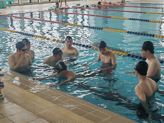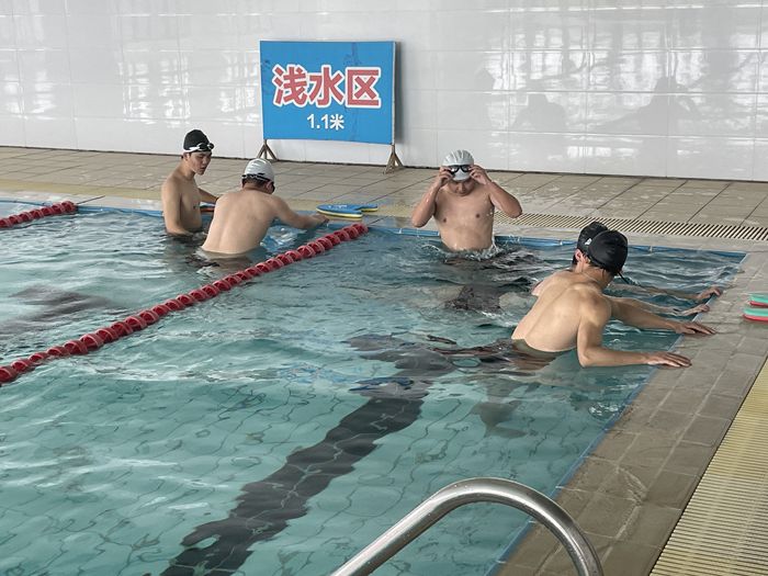 2023年4月24日中午,校湘渝铁人三项队黄静教练针对自由泳高肘抱水和蛙泳伸肩以及换气等游泳动作进行了详细讲解,通过专业的示范,改进了队员在蛙泳换气、自由泳抬肘等动作的不足之处,从而规范了游泳动作并提升游泳速度。