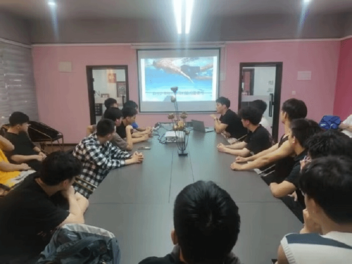 4月11日校男子游泳队在爱莲书院开展了理论课讲解。此次理论课主要讲解了划水动作的技巧,队员们都参与讨论,教练在对症下药,总结出大家的通病,后续为队员们一对一的指导动作技巧。本次的理论学习让队员们明确的了解到自己的不足,并加以改正,对训练有了新的领悟。