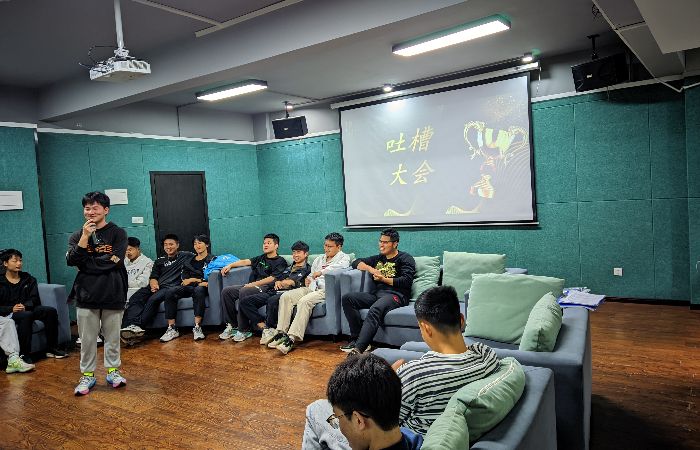 4月16日校13铁人三项队在爱莲书院举行了别具一格的“吐槽大会”。大会由吐槽、建议、心得三个部分展开。队员们围坐在一起,开始畅所欲言,吐槽学长、学弟、队长、教练,每个人都其乐融融,无形之中拉近了相互之间的距离。