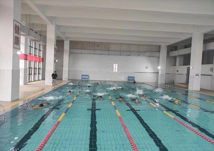 校男子游泳队在教练的带领下加强训练,增加训练强度,提升队员们的竞技水平。训练主要增加强度训练,大大增加了队伍的训练强度,加强队员的竞技水平,在教练的悉心指导下,队员们积极训练、配合教练,完成教练规定的指标,让队员们的实力逐步增长,稳健提升。