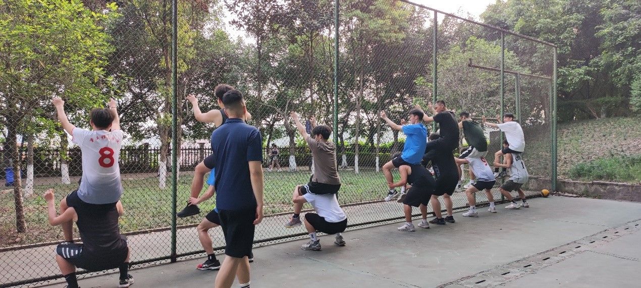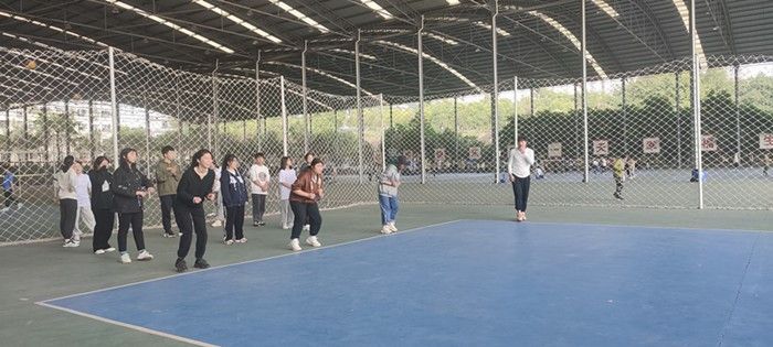 院系对接:德工学院和数信学院排球队对接训练,主要以场上转位和发球等基本技术进行训练,最后加入了一些趣味身体素质训练。如背、抱人跑接力赛,增加了趣味性同时锻炼学生的体能。