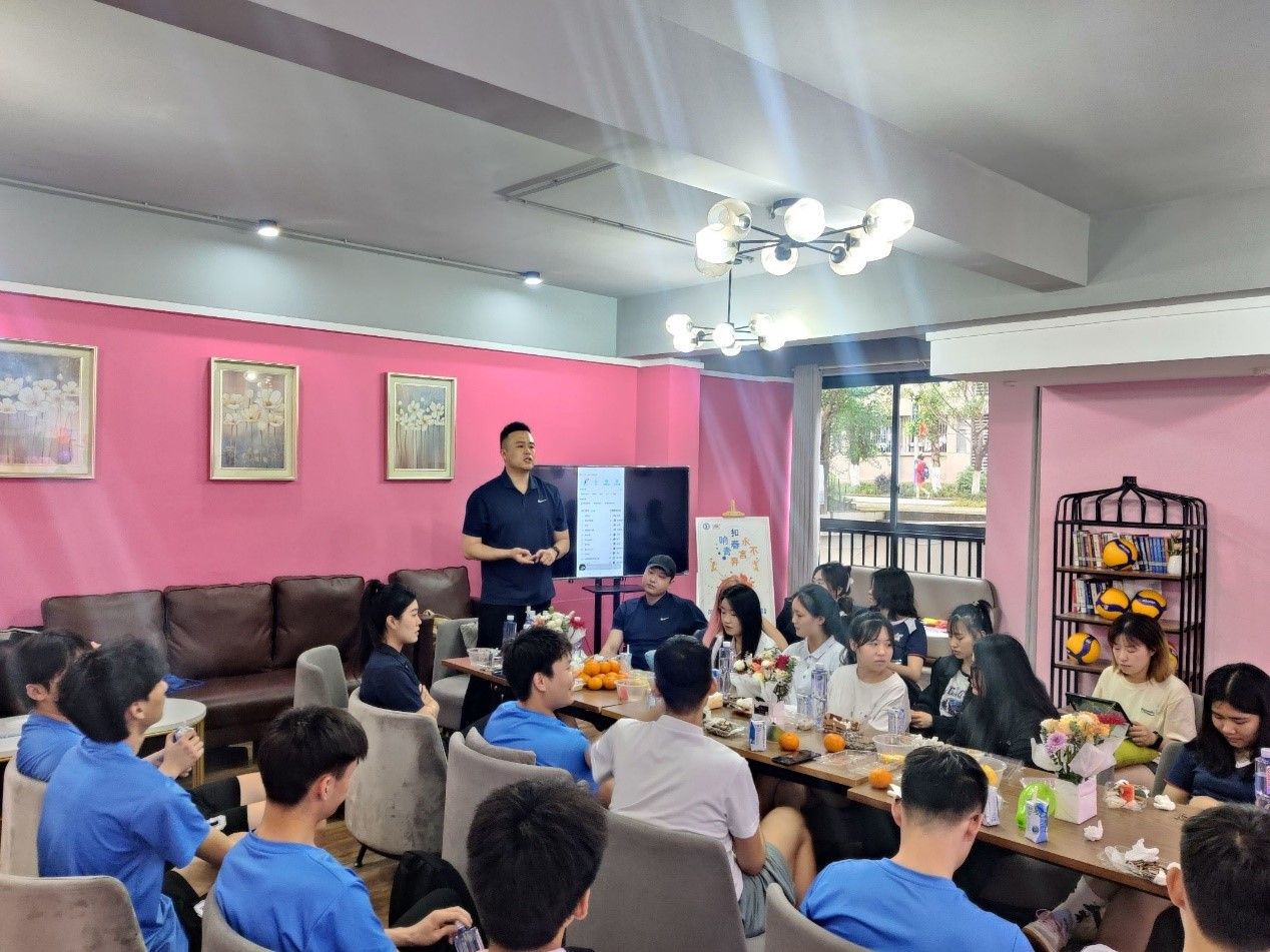 赛后分享会:校排球队4月21日下午在爱莲书院开展了“扣响青春、永不言弃”2023大学生排球比赛赛后分享会。参加本次分享会的有排球队全体人员和教练并邀请学院代表队队员代表共同参加。在轻松送的氛围中大家进行交流、对话并围绕今年比赛进行了回顾并进行总结收获和分享。