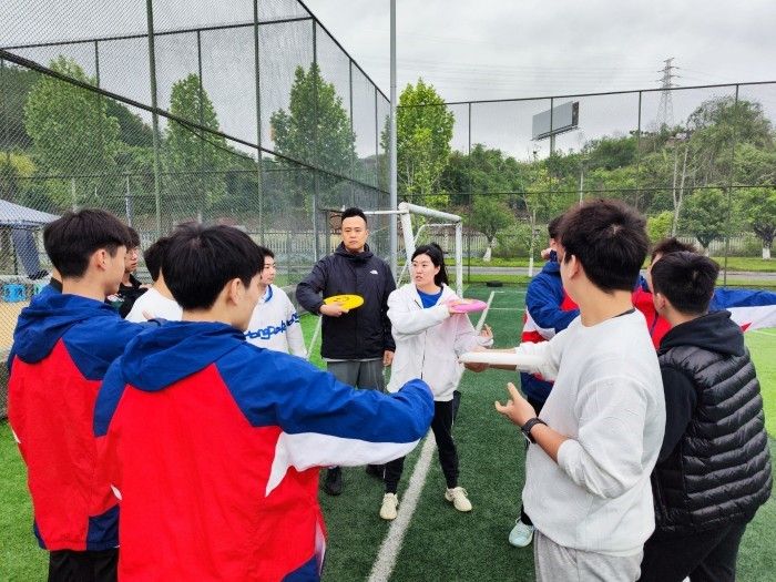 团建活动:4月24日,以“盘不落地 决不放弃”的主题,在D区五人制足球场开展了飞盘团建活动;飞盘和排球一样是一项团队运动,自由结合后,开始5v5的小比赛,在无教练的情况,自行商讨技战术,同时锻炼了队员们的谋略能力,也提高了彼此的默契程度。