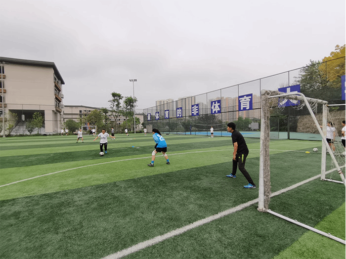 日常训练:为备战校园之春男足十一人制和女足五人制的比赛,根据不同的场地规则、特点。对男女足守门员分别进行有针对性的训练。女足五人制场地小节奏快,主要练习移动中接扑球、托球、出击时机等训练。男足守门员主要是练习连续扑球、移动中的站位、移动中的高球等。
