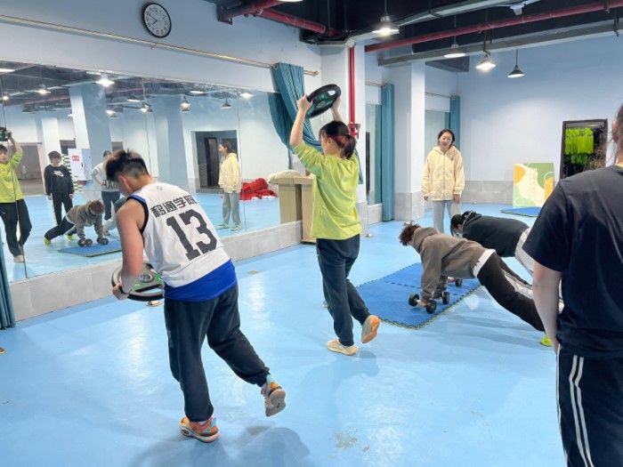 训练工作:本月校女篮的训练以三人间进攻配合为主,围绕传切、持球掩护、无球掩护的训练方式来加强队员的跑位意识;另外每周二汇江书院健身房进行专项力量训练,利用哑铃、杠铃、跳箱等训练器材,针对下肢绝对力量、下肢爆发力、核心稳定性以及上肢力量进行强化训练,从而在结合球训练中对不同技术动作有更好的力量支撑和保护。
