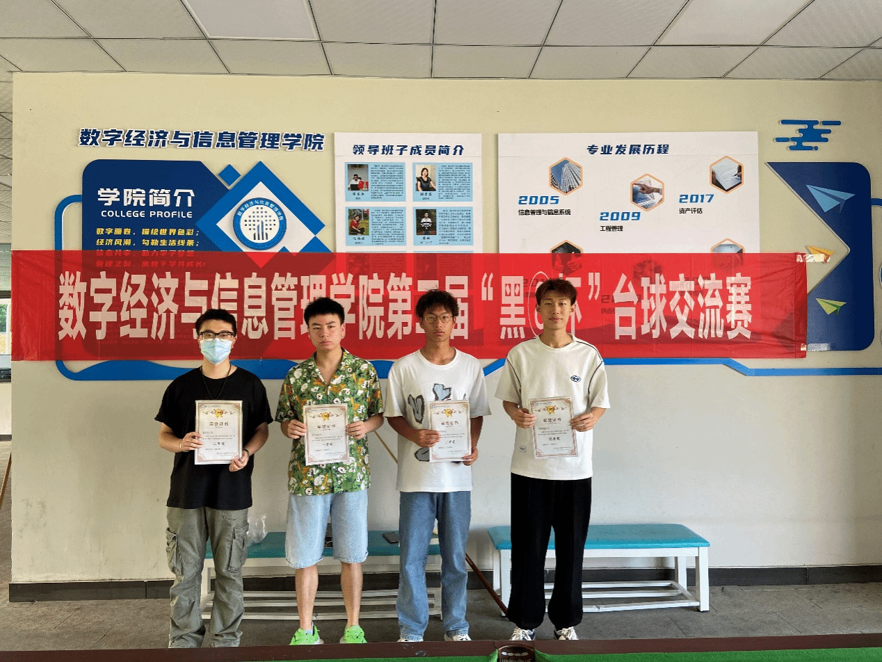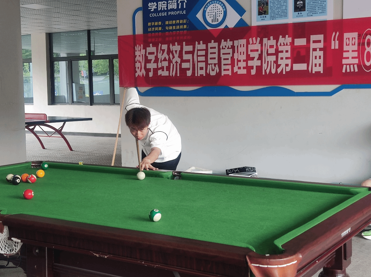 此次活动延续了数字经济与信息管理学院首届黑⑧杯比赛,希望将中式黑八融入同学们的生活,丰富大学生的课余生活。作为四大绅士运动之一的台球。未来的黑⑧杯期待与你继续相遇,作为普通运动爱好者,能够从运动中收获快乐,才是最关键的。