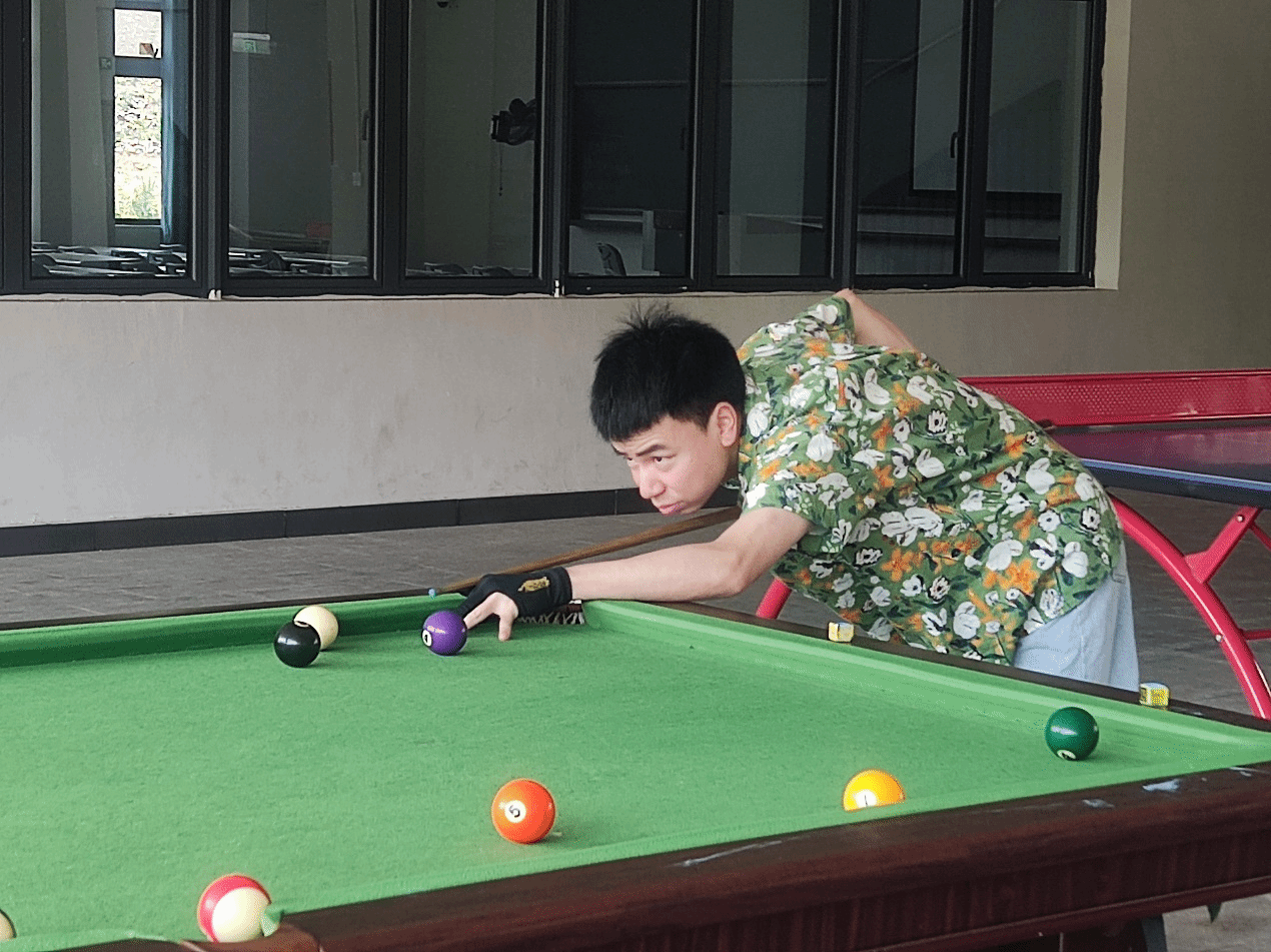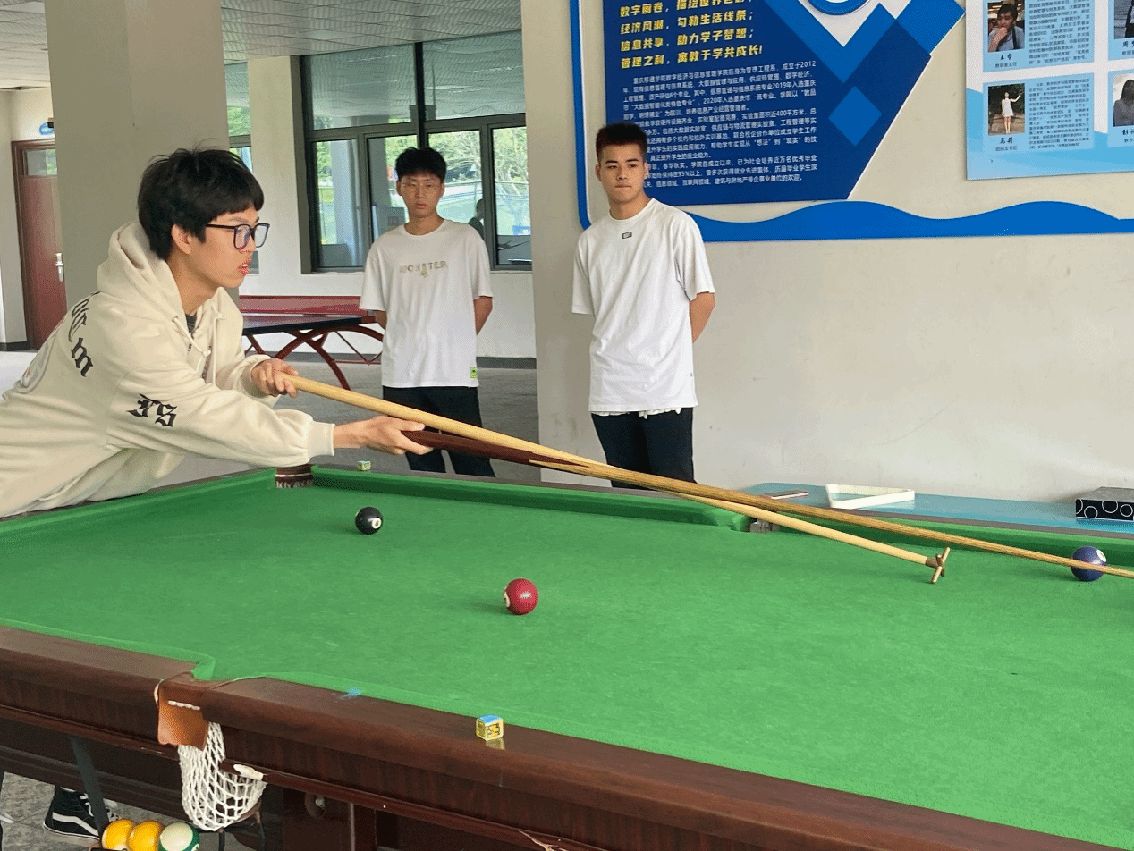 燃烧青春热血,撞击台球精彩。生活中不乏有许多热爱台球运动的同学,要想提升自己的球技,了解自己的台球水平,除了日常生活中的训练,最显著的还应是比赛。比赛中才能知道孰强孰弱,这次比赛更是给热爱台球的同学一个相互交流切磋的机会。台球是一项高智商的运动,需要思考的地方特别多。要想打好台球,需要有很强大的思考能力、预判能力、布局能力,每打一球都要进行多方的思考,不仅仅要思考下一个球怎么打,后面很多个球都要思考到位。