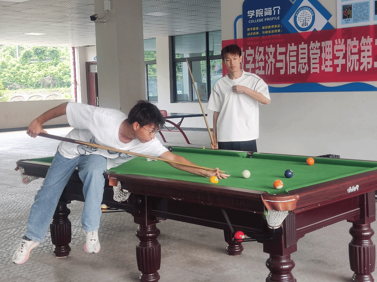 风在春时摇曳,树在风里苏醒。起源于西欧的台球,历史非常悠久,至今为止已经有五、六百年的历史,台球发展至今,已经非常成熟,是一项非常好的体育运动。为推广台球运动在我院不断发展,给台球选手提供一个互相交流以及学习的平台。4月28日中午12:10数字经济与信息管理学院第二届“黑⑧”杯台球交流赛在双栀教学楼二楼台球展厅拉开帷幕。