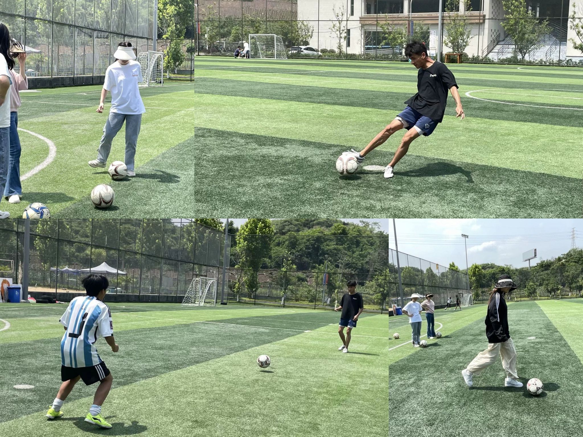 足球小乾坤,脚下大天地,玩转足球,快乐精彩,院队成员通过亲身示范足球的盘带技巧,吸引同学们注意,提起兴趣,之后进入理论知识的讲解,对踢球、盘球动作进行练习,让同学们对足球的了解更上一层楼。同学们在碧绿的足球场上奔跑,肆意挥洒汗水,美丽的足球寄托着执着的梦想,奔跑的身影闪烁着快乐的光华,希望同学们把这份勤劳执着快乐和无畏蔓延进生活的每一个部分,把运动和健康带进生活的每一个角落。