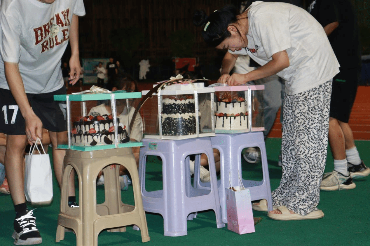 五月,是刚诞生的夏天,是温暖,是热情。在五月各校队迎来本月生日会。首先,各校队五月的寿星被邀请到前桌就坐,桌面摆满蛋糕和零食。大家帮忙点燃蜡烛,寿星们双手整合,放在前胸,闭上眼睛,在祝福生日歌中,许下心愿。蜡烛的光映射在他们的脸上,像星星般如此的耀眼,嘴角不禁上扬,一定是许了很美好的愿望。他们许完愿,轻轻吹灭蜡烛,随即响起掌声和欢呼声。蛋糕被分成一份份,喜悦也传递到每个人的心上。