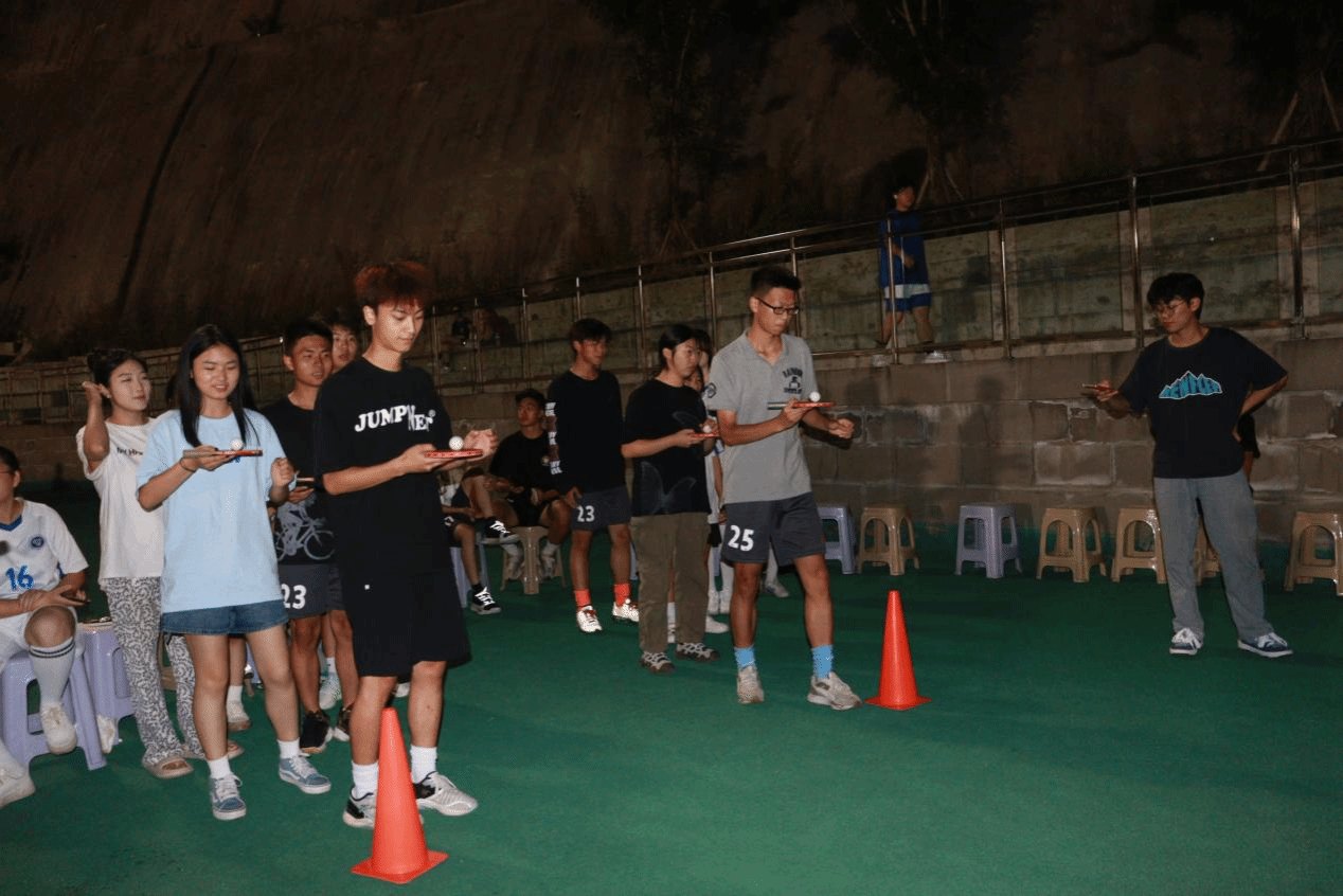 如果说“胡辣汤”之争是头脑风暴,那么“乒乓接力”可谓体力之战。参赛队伍需要完成规定乒乓球个数的传输,用时最少者获胜。裁判哨声吹落之际,激烈的角逐就此展开,参赛者们你追我赶,分秒必争。