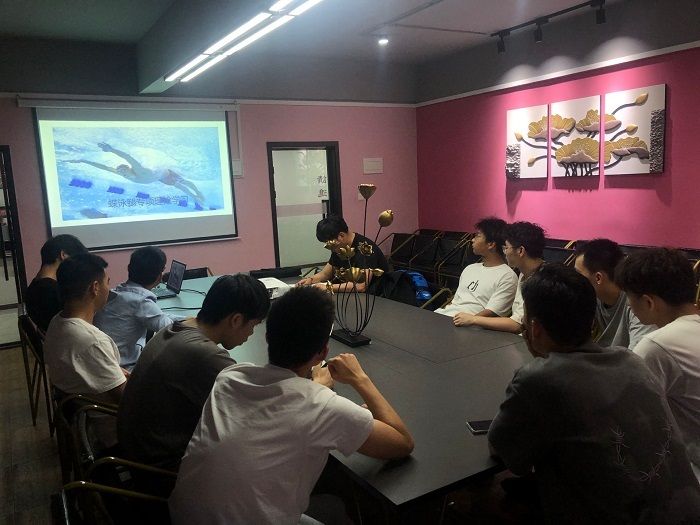 5月23日校男子游泳队的理论学习在爱莲书院举行。本次理论学习主要为大家讲解了关于蝶泳腿的相关知识,平日大家对蝶泳的接触不多,教练逐步细致的为大家分析讲解蝶泳的一些技术动作以及相关细节,队员们也积极好学,提出自己的疑问,教练一一为大家讲解,让队员们对蝶泳的领悟更加深刻。