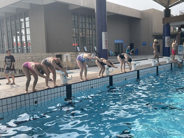 本月校男子游泳队的训练从内池转换到了学校外池,大部分队员也是第一次在外池训练,虽然环境改变了,但是队员们对训练的热情依旧不减,反而更加积极,有时天气不好,但教练和队员们也从未缺勤每一次训练。
