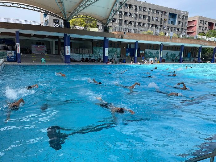 5月19日校男子游泳队与水育梦工坊联合在天池开展了蛙泳基础技术进阶学习,有了上一次的学习,同学们对蛙泳腿更加熟练。接着上一次的进度,继续对同学们蛙泳教学。大多数同学逐步领悟蛙泳的重点,能够在水中打腿滑行,为下一次教学打下坚固基础。